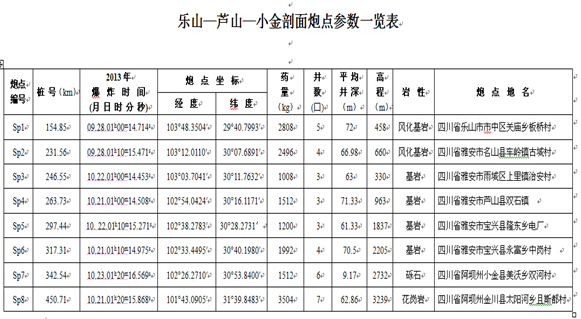 炮点参数表